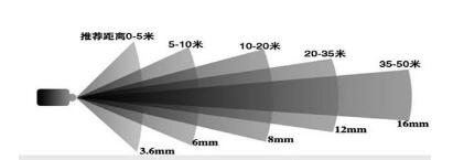 根據所需監控范圍來確定,監控攝像頭所用的鏡頭與單反相機類似,按照畫幅大小一次排列為2.8mm, 3.6mm, 4mm, 6mm, 8mm, 12mm, 16mm, 24mm等。 毫米數越小,鏡頭所攝入的畫面越寬,但與此同時所照的距離越近;毫米數越大,監控攝像頭所攝入的畫面越窄,但同時所照的距離越遠。
