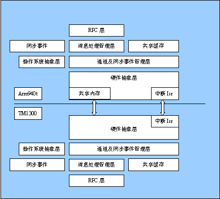 在這里我們還要專門的描述的是位于硬件抽象層里的共享內(nèi)存,它只在HOST的一方存在,所有需要兩個處理器共享的數(shù)據(jù)都存儲在該區(qū)域里,包括高層的共享緩存、消息、同步事件、通道信息等數(shù)據(jù),因此需要主機維護物理連續(xù)的、一定大小的內(nèi)存,并且是處理器非cacheable的區(qū)域。