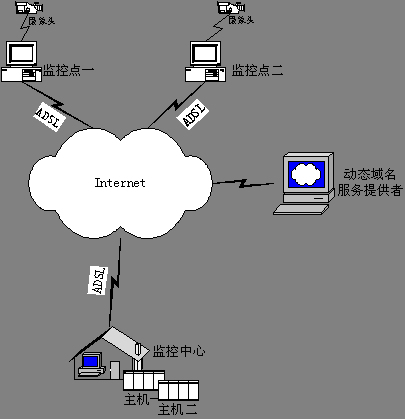 原來基于固定IP地址的數(shù)字視頻網(wǎng)絡(luò)監(jiān)控系統(tǒng),幾乎可以直接使用這種模式。當然,原來如果是預(yù)先配置遠程監(jiān)控點IP地址的,現(xiàn)在需要改變成預(yù)先配置遠程監(jiān)控點的Internet域名。編寫程序的時候只需要調(diào)用相應(yīng)API函數(shù),就可以獲得Internet域名對應(yīng)的IP地址。