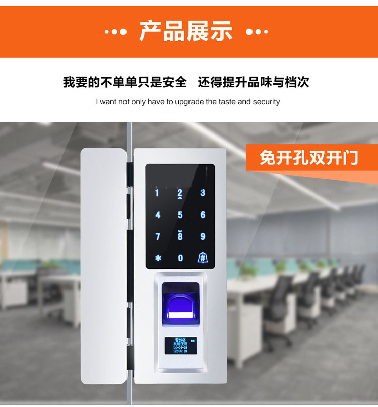 玻璃門指紋鎖密碼刷卡鎖免開孔、門禁系統(tǒng)帶遙控支持微信遠程開門
